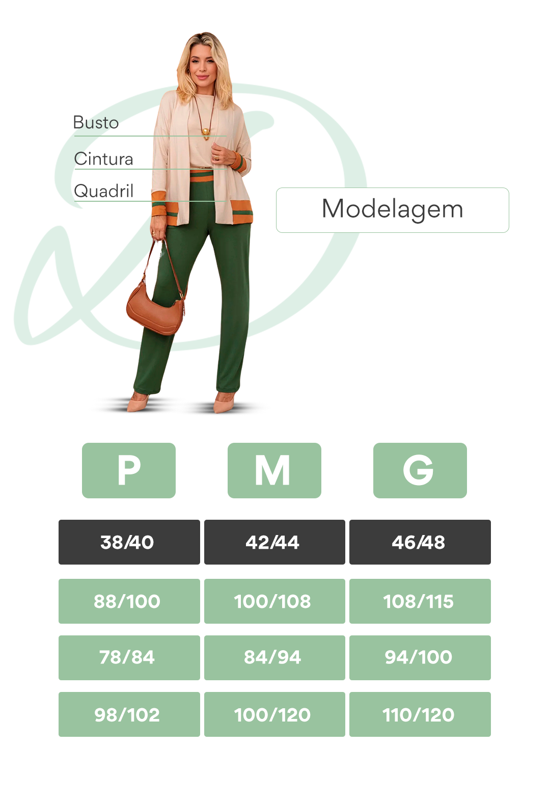 O Class foi criado para a mulher que quer estar sempre pronta e confiante, sem perder tempo escolhendo combinações. Com regata, cardigan e calça em moletinho premium, ele entrega um visual completo em segundos, com caimento leve e sofisticado. É o conjunto que transforma a sua rotina: do trabalho ao lazer, você se sente segura, elegante e confortável o dia todo.