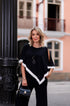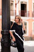 - Fenda na manga (abertura estratégica) que cria um movimento único e sofisticado