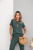 Sofisticação leve que transborda conforto. O Conjunto Essence foi pensado para a mulher que busca elegância em cada detalhe, sem abrir mão da praticidade. A blusa de mangas curtas com gola redonda harmoniza perfeitamente com a calça de corte reto e bolsos frontais.