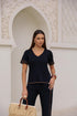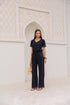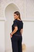 Elegância e conforto se unem neste conjunto de blusa e calça em viscolycra de alta qualidade.