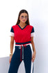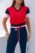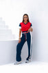 A blusa apresenta decote em V com recorte preciso, criando uma linha que alonga o colo e valoriza o rosto. As mangas com contraste sutil de textura trazem um ar contemporâneo e equilibrado, enquanto o elástico embutido na cintura. A calça possui modelagem reta e elegante, com recorte lateral que alonga a silhueta e proporciona movimento fluido.