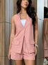 Este conjunto de linho é a definição de sofisticação leve e moderna. Composto por um blazer sem mangas e shorts estruturados, ele exala elegância e frescor, perfeito para ocasiões que exigem um toque de classe sem perder o conforto. O tom suave, combinado com os detalhes impecáveis, como os bolsos frontais e o delicado botão, adiciona um charme sutil, enquanto a modelagem favorece todos os tipos de corpo. Esse conjunto é ideal para quem deseja arrasar em eventos casuais ou até mesmo em um encontro sofisticado. Invista nesse look e conquiste todos os olhares com muito estilo e sofisticação.