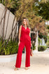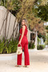A blusa estilo colete tem traspasse com decote V que alonga e valoriza, enquanto a fivela dourada adiciona um toque de charme luxuoso. A calça, com elástico na cintura e bolsos funcionais, traz conforto absoluto e um caimento fluido que acompanha seus movimentos com graça.
