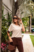 A blusa tem modelagem confortável, com caimento solto que valoriza sem marcar. A Calça modelo alfaiataria slim trazendo uma cintura confortável, criando um equilíbrio perfeito entre sofisticação e praticidade. O design contemporâneo transforma o look básico em algo especial, sem esforço.
