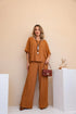 Descubra a sofisticação atemporal com nosso conjunto em linho com elastano, composto por blusa de modelagem ampla e calça pantalona de caimento impecável. A peça une conforto e elegância, com um toque moderno.