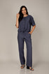 Conjunto confeccionado no tecido Marrant(tecido plano sem elastano), que une estrutura leve com sofisticação, extremamente confortável. A blusa possui fechamento frontal por botões, mangas com detalhe ajustável e um charme extra no acabamento. O destaque fica para o ajuste na cintura com amarração, que valoriza a silhueta sem marcar, trazendo praticidade e modernidade ao look.