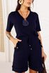 A blusa possui modelagem moderna, com decote suave e mangas que alongam o visual. Já a bermuda longa e extremamente elegante traz bolsos utilitários com botões metalizados, barras dobradas e costuras que valorizam o corpo sem marcar.