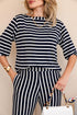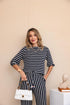 O charme extra fica por conta das listras posicionadas no vertical e horizontal, que alongam a silhueta e criam um visual moderno e refinado.