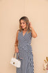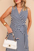 Conjunto moderno e versátil, composto por blusa transpassada com faixa para amarração na cintura e saia com elástico e bolsos laterais. As listras em diagonal trazem um charme elegante e alongam a silhueta, garantindo estilo e conforto em todas as ocasiões.