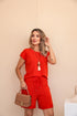 O conjunto Safira traduz frescor e modernidade em um look prático e estiloso. A blusa de modelagem soltinha garante conforto, enquanto o short com amarração na cintura e bolsos funcionais une praticidade e charme em um visual versátil para diversas ocasiões.