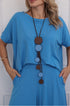 A blusa de modelagem soltinha com mangas amplas traz movimento e conforto. Confeccionado em viscolycra, o conjunto garante toque macio e liberdade total, perfeito para acompanhar sua rotina com elegância.