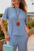 Recortes estratégicos na blusa criam leveza e modernidade, alongando a silhueta com sofisticação.