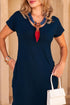 Vestido curto é feito em visco lycra (290g), garantindo um caimento impecável sem marcar.