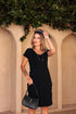 O design, com decote redondo e mangas curtas, ganha funcionalidade com os bolsos frontais, adicionando um toque casual e utilitário à peça.