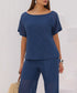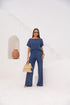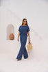 Conjunto em tecido com transparência sutil, leve e elegante. Blusa ampla com decote ombro a ombro e calça de caimento fluido criam uma silhueta alongada e sofisticada. Textura em listras traz charme e exclusividade. Um look refinado, moderno e de alto padrão, perfeito para quem busca estilo com leveza.