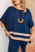Um look que traduz poder e sofisticação sem abrir mão do conforto. A blusa ampla, de caimento leve e elegante, garante movimento e fluidez, enquanto a calça pantalona com detalhe bicolor alonga e afina a silhueta com maestria. Cada detalhe foi pensado para a mulher moderna que deseja sentir-se impecável em qualquer ocasião, com a segurança de estar vestindo algo que valoriza sua essência.